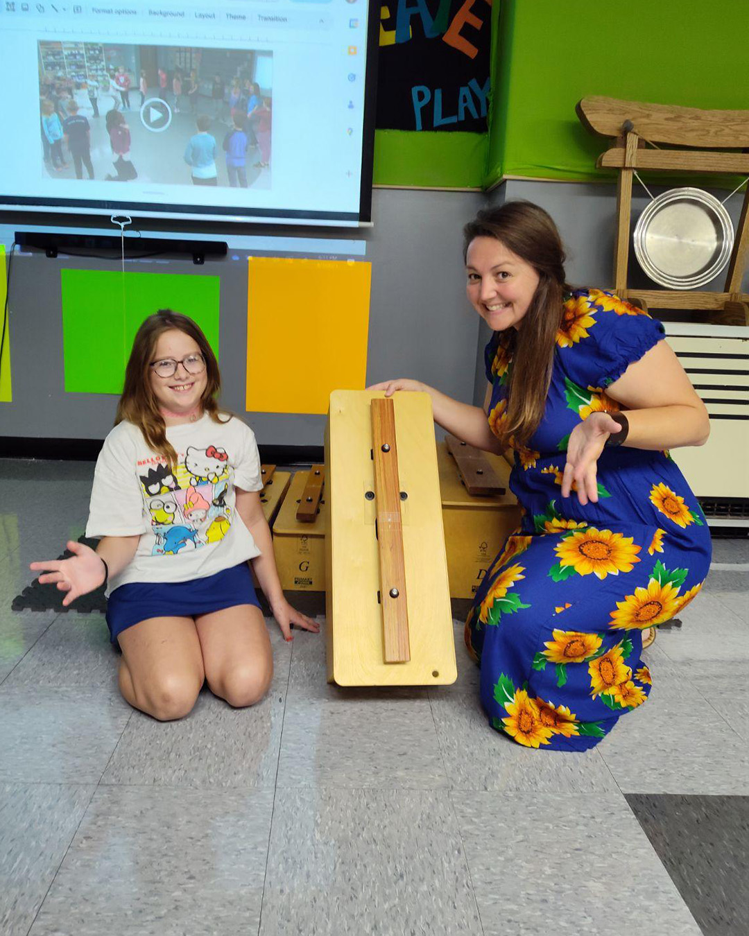 - Carrie Hamilton’s fifth grade music class at Tzouanakis Intermediate School gets to play a new xylophone bass bar F as well as an extra partner set of players on a new bass xylophone.